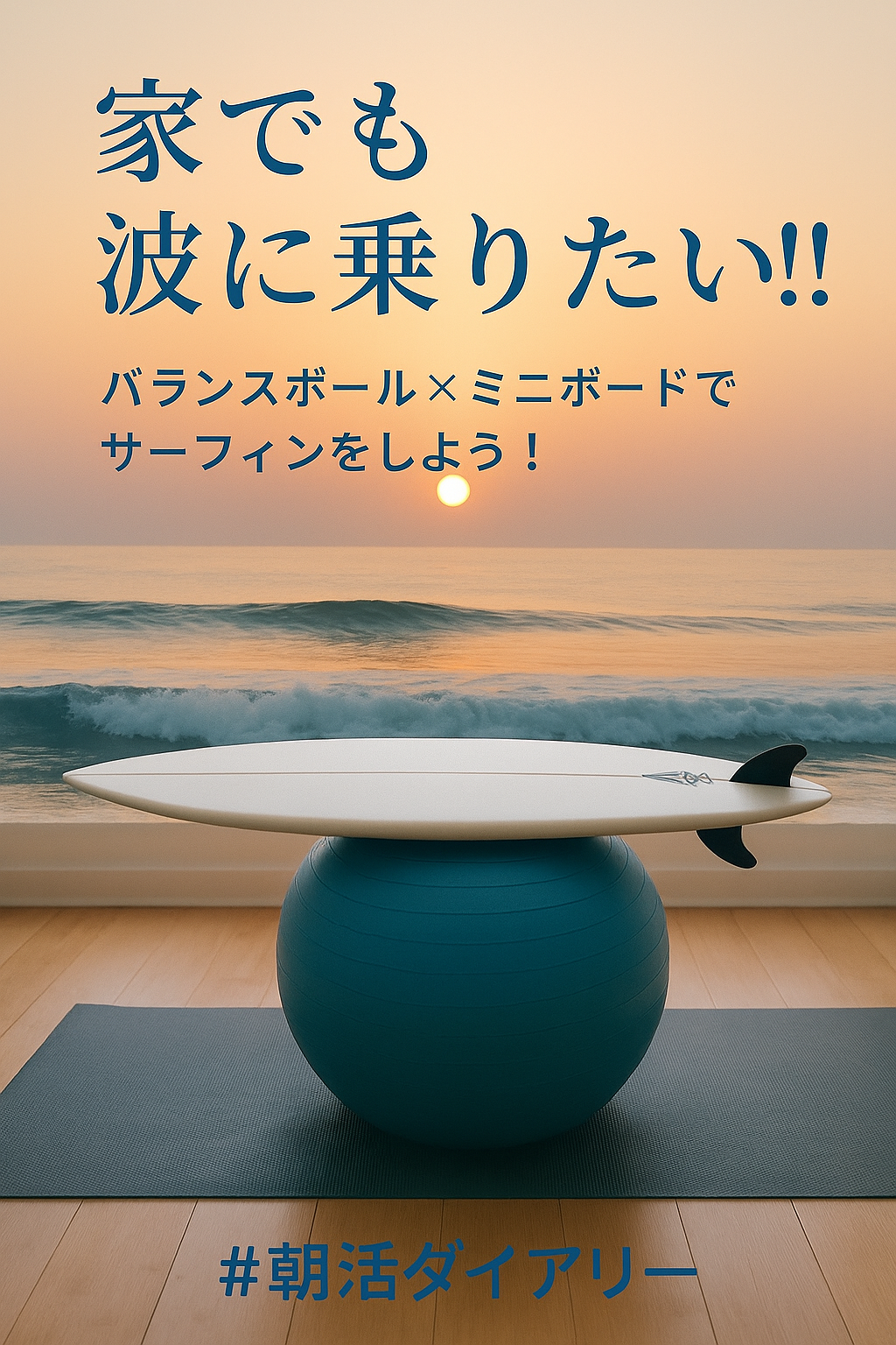 天気が良くて、サーフィンがしたいけど海に行けない日、ありますよね。やっとコツを掴み始めたのに、感覚が失われちゃう…ご安心ください。家でサーフィンができちゃうんです!!「波に乗る感覚」を失いたくなくて始めたのが、バランスボール×ミニボードの陸...